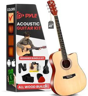 Pyle 41" Full-Size Acoustic Guitar Kit - Cutaway Body with Digital Tuner & Accessories (Natural) (PGSTGR007N2)
