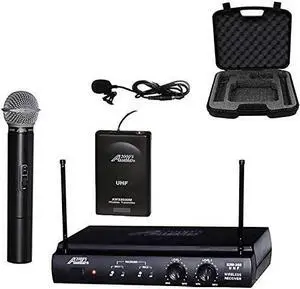 Alvoxcon UHF Dual Channel Wireless Lavalier Microphone System with Volume Control for iPhone, DSLR, PA Speaker, YouTube, Podcast, Video Recording, Conference, Vlogging, Church, Interview, Teaching