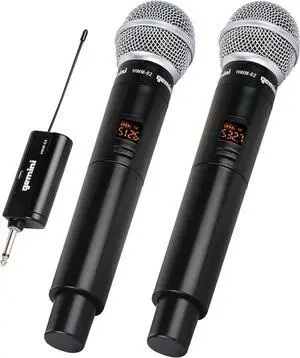HOTEC UHF Wireless Dual Handheld Microphones with Rechargeable 1/4 Output Mini Portable Receiver for Live Performance Over PA, Mixer, Speaker (H-U26C)