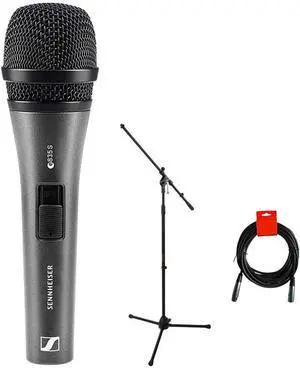 Sennheiser E835-S Dynamic Cardioid Vocal Microphone (on/off switch) with Tripod Mic Stand & XLR-XLR Cable Bundle
