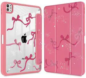 Tuiklol Case for iPad Pro 11 Inch (M4) 2024 5th Gen, Buit-in Pencil Holder with Clear Back Cover Protection Trifold Stand-Auto Wake/Sleep Tablet Case Model:A2836/A2837/A3006,Bow-Watermelon Red