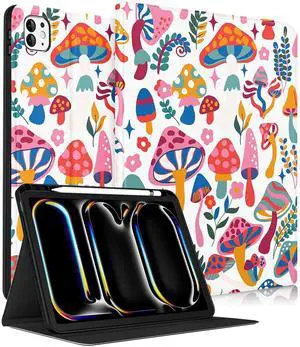 Uppuppy for iPad Pro 11 Inch Case 2024 - Women Girls Cute Folio Smart Cover with Pencil Holder Girly Kawaii Pretty Colorful Mushroom for iPad Pro 11 M4 Cases A2836 A2837 A3006