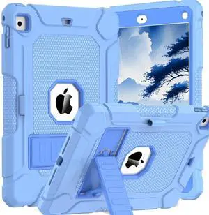 CCMAO Case for iPad 6th Generation/ipad 5th Generation/iPad 9.7 Inch (2018/2017 Model), iPad Air 2 Case, Hybrid Shockproof Rugged Protective Cover with Kickstand for Kids Boys, Sky Blue+Black