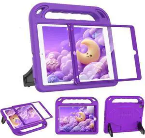 BMOUO Kids Case for iPad 6th/5th Generation (iPad 9.7-inch, 2017/2018), iPad 9.7/Air 2 Case with Screen Protector, Shockproof Handle Stand iPad 6th 5th Generation Cas e for Kids, Purple