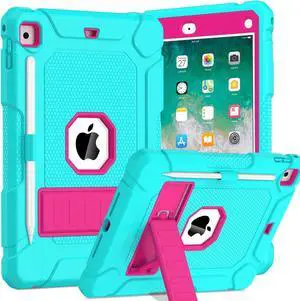 BMOUO Case for iPad 6th 5th Generation (9.7 inch, 2018/2017), Shockproof Protective iPad 9.7 Case with Built-in Stand/Pencil Holder for iPad 6th/5th Gen, Air 2, Turquoise