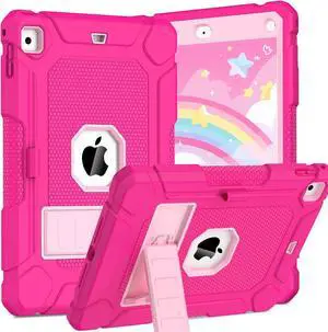 BMOUO Case for iPad 6th 5th Generation (9.7 inch, 2018/2017), Shockproof Protective iPad 9.7 Case with Built-in Stand/Pencil Holder for iPad 6th/5th Gen, Air 2, Rose and Pink