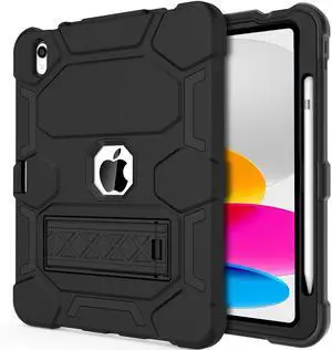 CCMAO Case for iPad (A16) 11th/10th Generation(2025/2022), iPad 10th Case with Kickstand & Pencil Holder, Heavy Duty Shockproof Hybrid Three Layer Protective Cover for Women, Black