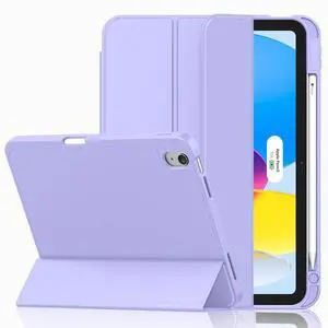 iMieet Case for iPad (A16)/iPad 10th Generation [11-Inch 2025/10.9 Inch 2022], Trifold Stand Smart Cover with Pencil Holder and Soft TPU Back, Supports Touch ID(Lavender)