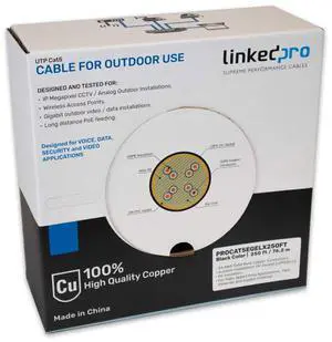 LinkedPro 250' Weatherproof Waterproof UV Rated Direct Burial Gel Filled Network CAT5e Cable W/Solid Copper Conductors