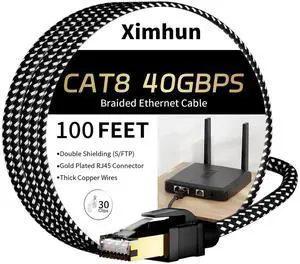 Ximhun Cat8 Round Ethernet Cable 100FT Heavy Duty High Speed Internet Network Ethernet Cord Indoor&Outdoor
