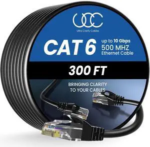 Ultra Clarity Cables Cat 6 Ethernet Cable 300 ft, Outdoor&Indoor 10Gbps Ethernet Cable, High Speed Cat6 Cable RJ45 LAN Internet Cable for Computer, Router, Modem, PS4/5, Xbox, Gaming - Black