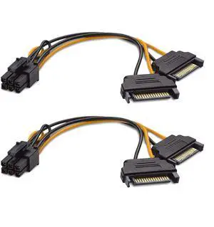 2-Pack 6 Pin PCIe to Dual SATA Power Cable 4 Inches 2X SATA to 6 Pin PCIe