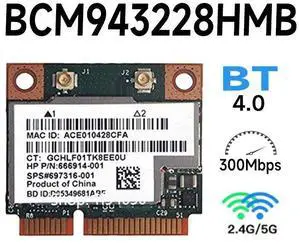 for BCM943228HMB BCM43228 BCM943228 Half Mini PCI-e Wlan Wireless BT Bluetooth 4.0 Card 300M 2.4G/5G