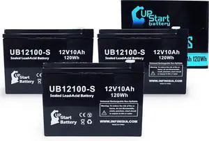3 Pack Replacement for Schwinn S750 36 Volt Battery - Replacement UB12100-S Universal Sealed Lead Acid Battery (12V, 10Ah, 10000mAh, F2 Terminal, AGM, SLA)