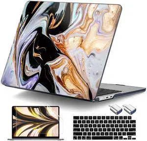 DONGKE for MacBook Air 13.6 Inch Case 2026 2025 2024-2022 A3449 A3240 A3113 A2681 M5 M4 M3 M2 Touch ID, Plastic Hard Shell & Keyboard Cover & Type C Adapter for MacBook Air 13 inch, Black Marble