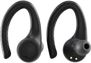 Coby True Wireless Bluetooth Earbuds Headphones with Interchangeable Ear Hooks Tips Multi-Sized Ear Gels Sweat-Resistant 14-Hour Playtime Drop-Proof Case Black