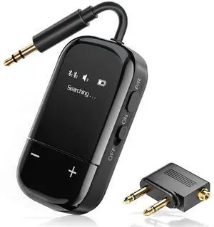 Gistarne-X Airplane Bluetooth 5.3 Audio Transmitter with Qualcomm aptX Adaptive, LCD Display, Dual Device Support, 30Hr Battery, 3.5mm AUX for Travel, Flight, Gym
