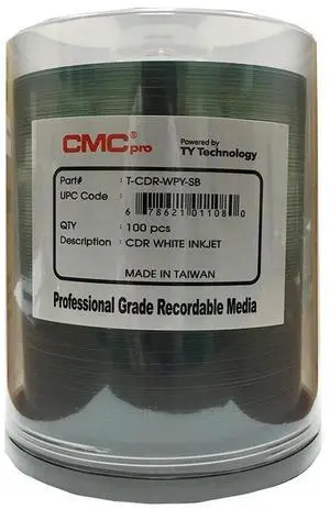 CMC Pro - Powered by TY Technology 80 Minute/700mb White inkjet CD-R in Cake Box - 100 Count