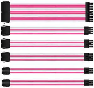 wusu Power adapter cable motherboard 24P / CPU 8P graphics card 6+2P / PCIe 6P nylon braided extension cable Light pink and white