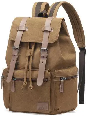 DTGN Vintage Canvas Backpack for Men & Women, Durable Casual Daypack with Leather Accent, Fits for College, Work, Travel, & Outdoor, Brown