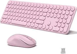 KEQTFT Wireless Keyboard and Mouse Combo, 110 Round Quiet Keys, Adjustable Optical Mouse, Share 1xUSB Receiver, Power Switch, for Windows Mac(Pink)