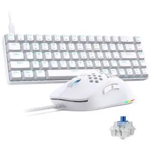 TMKB Falcon M1SE Gaming Mouse, T68SE 60% Mechanical Gaming Keyboard, LED Backlit, 12800DPI Optical Sensor with Blue Switch-White