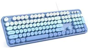 MOWUX Computer Keyboard Wired, Plug and Play USB Retro Round Typewriter Keyboard, Full Size Wired Keyboard with Foldable Stands for Laptop and Office PC- Blue Gradient