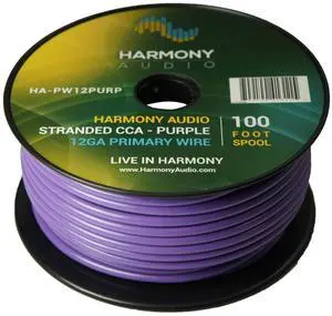 Harmony Audio HA-PW12PURP Primary Single Conductor 12 Gauge Purple Power or Ground Wire Roll 100 Feet Cable for Car Audio/Trailer/Model Train/Remote