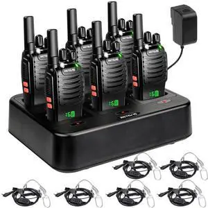Retevis H-777H Walkie-Talkies with 6 Way Gang Charger,2 Way Radios with Earpiece,Hidden LED Segment Displays,Flashlight,USB-C,VOX,Portable FRS Two-Way Radios for Retail Property Church Hotel(6 Pack)