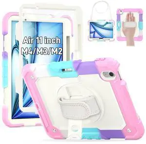 HXCASEAC Shockproof Case for iPad Air 11 inch M4 M3 M2 (2026 2025 2024), Full Body Protective with Pencil Holder, Built-in Screen Protector, Rotating Stand, Hand Strap, for iPad Air 11 Case (Pink)