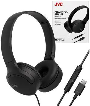 JVC USB-C Wired On-Ear Headphones with Mic Comfortable All-Day Wear, Clear Calls, Rich Sound Foldable & Lightweight Tangle-Free Single-Sided Cable Great for Gaming & Work from Home