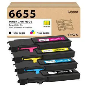 Lezzo 6655 Toner Cartridge 4-Pack 106R02745 106R02746 106R02747 106R02744 Toner Replacement for Xerox 6655 Toner for Compatible with Xerox WorkCentre 6655 6655i Printer (Black Cyan Magenta Yellow)