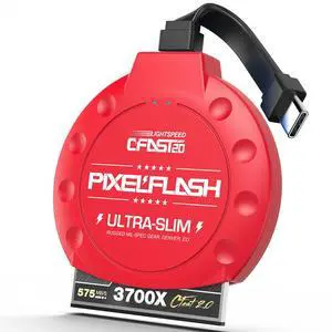 PixelFlash CFast 2.0 Card Reader USB C (Red) - Memory Card Adapter with Cabled Type-C USB 3.1 Gen 2, Up to 10Gbps File Transfer, Ultra-Slim & Anti-Slip Rubber Shell, Compatible with Most Brands & OS