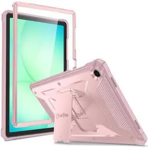 Fintie Shockproof Case for Samsung Galaxy Tab A9 Plus/A9+ 5G 11 Inch 2023 Model (SM-X210/X216/X218), Tuatara Rugged Unibody Hybrid Bumper Kickstand Cover Built-in Screen Protector, Rose Gold