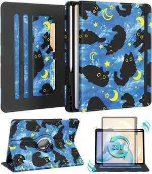 Kidcube for Samsung Galaxy Tab A9 Plus Case 11 Inch - for Women Girls Cute Rotating Stand Folio Cover with Pencil Holder & Card Slot Girly Cat Unique Design Blue Teen for Samsung A9 Plus Tablet Cases