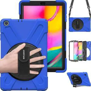 BRAECN for Galaxy Tab A 10.1 Case SM-T510/SM-T515,[Adjustable Hand Strap] [Rotating Stand] [Attachable Shoulder Strap] Heavy Duty Drop Protection Rugged Case for Samsung Tab A 10.1 Inch 2019 -Blue