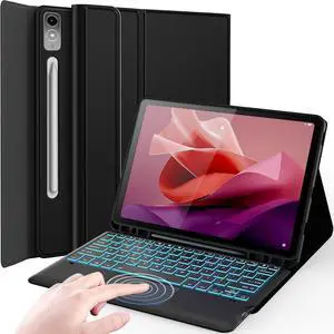 Nanhent Keyboard Case for Lenovo Tab P12 12.7 Inch TB370FU Tablet 2023, 7 Colors Backlit, Smart Touchpad, Detachable Bluetooth Wireless Trackpad Keyboard & Slim PU Stand Cover with S Pen Holder (P12)