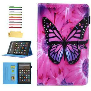 UUcovers Case for Kindle Fire HD 8 Tablet (8th/7th/6th Gen, 2018/2017/2016),Smart [Auto Sleep/Wake] PU Leather Magnetic Wallet Cover with Card Pocket Stylus/Pencil Holder, Red Butterfly Flower