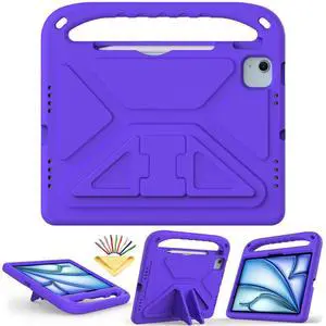 UUcovers Kids Case for Apple iPad Air 11 inch M3/M2 (2025/2024) & iPad Pro 11 inch M4 (2024) Stand Cover with Pencil Holder/Handle Kickstand/Lightweight Soft EVA Foam Shockproof Tablet Cover, Purple