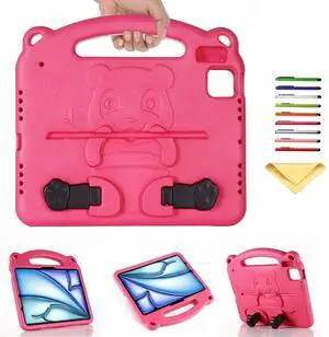 UUcovers Kids Case for Apple iPad Air 11 inch (M3 2025/M2 2024) & iPad Pro 11 inch (M4) Case 2024 with Handle/Kickstand Lightweight Soft EVA Foam Shockproof Slim Stand Tablet Cover, Rose Panda