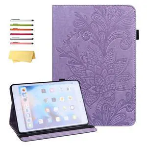 UUcovers for Kindle Fire HD 8 Case 8th/7th/6th Generation (2016/2017/2018) with Stand/Pencil Holder/Pockets [Auto Wake/Sleep] Magnetic Smart Embossed Floral PU Leather Shockproof Cover, Purple Flower
