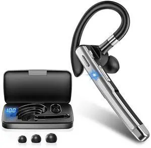 wusu Bluetooth Earpiece V6.1,Wireless Handsfree Headset with Mic,CVC8.0 Noise Cancelling Headset,100 Hrs Talk Time Driving Headset for Android, iOS,Laptop,Office,Truck Driver,Crystal Black