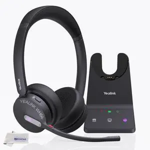 Yealink WH64 Wireless DECT Headset & Bluetooth UC Duo, Teams & Zoom Compatible, Acoustic Shield 2.0, 3-Mic Noise Cancellation, All-Day Comfort, Plug & Play for PC, Phone & UC Platforms, Long Battery
