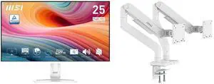 MSI 24" (24.5" viewable) Full HD 120Hz IPS with Adaptive Sync 1ms HDR Ready Built-in Speakers White Computer Monitor with phone accessory slot on stand PRO MP251W E2 MSI MAG MT101DG - Gas spring Dual Monitor Stand Arm, Supports 17-32" Scree