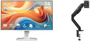 MSI 24" Full HD 144Hz IPS with Adaptive-Sync 1ms HDR Ready Built-in Speakers white computer monitor for both work and gaming MP243W E14 MSI MAG MT201W - Premium Heavy Duty Single Monitor Stand Arm, Supports 17-49" Screens and 44 lbs, VESA C