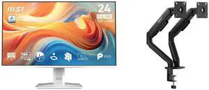 MSI 24" Full HD 144Hz IPS with Adaptive-Sync 1ms HDR Ready Built-in Speakers white computer monitor for both work and gaming MP243W E14 MSI MAG MT201D - Premium Heavy Duty Dual Monitor Stand Arms, 17-45" Support, VESA Compatible, Adjustable