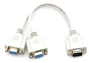 DB9 Male to 2 Female Serial Rs232 Splitter Cable Rs232 Male to 2 Female 2 in One Cable for Cash Register Displays - White