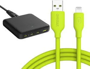 67W 4-Port Slim GaN USB C Charging Station with 6FT Lime Green Apple MFi Certified iPhone Lightning Cable, Fast Charging Desktop Charger for MacBook Laptop iPhone 14 13 12 11 XR