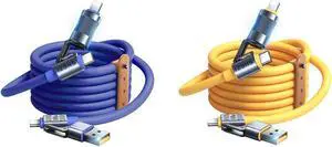 4 in 1 USB C Cable Lightning Cable 100W Yellow +Blue