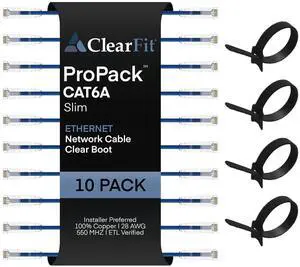 Cat6A Ethernet Cable, 6ft, 10 Pack, Blue, Slim with Straps, Supports 10 Gbps, Compatible with Laptop, Server, Router, Gaming Console, Smart TV